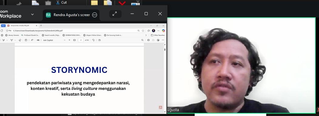 Program Studi Sastra Daerah Fakultas Ilmu Budaya (FIB) Universitas Sebelas Maret (UNS) menggelar kegiatan Alumni Mengajar pada Rabu (24/9/2025) pagi secara daring. Kegiatan ini mengundang alumni Prodi Sastra Daerah FIB UNS Angkatan 2009 sekaligus praktisi budaya, Rendra Agusta, S.S., M.Sos., sebagai narasumber. Adapun tajuk yang diangkat dalam kegiatan ini adalah Strategi Storynomic Tourism dan Industri Kreatif Berbasis Kebudayaan Jawa Klasik.