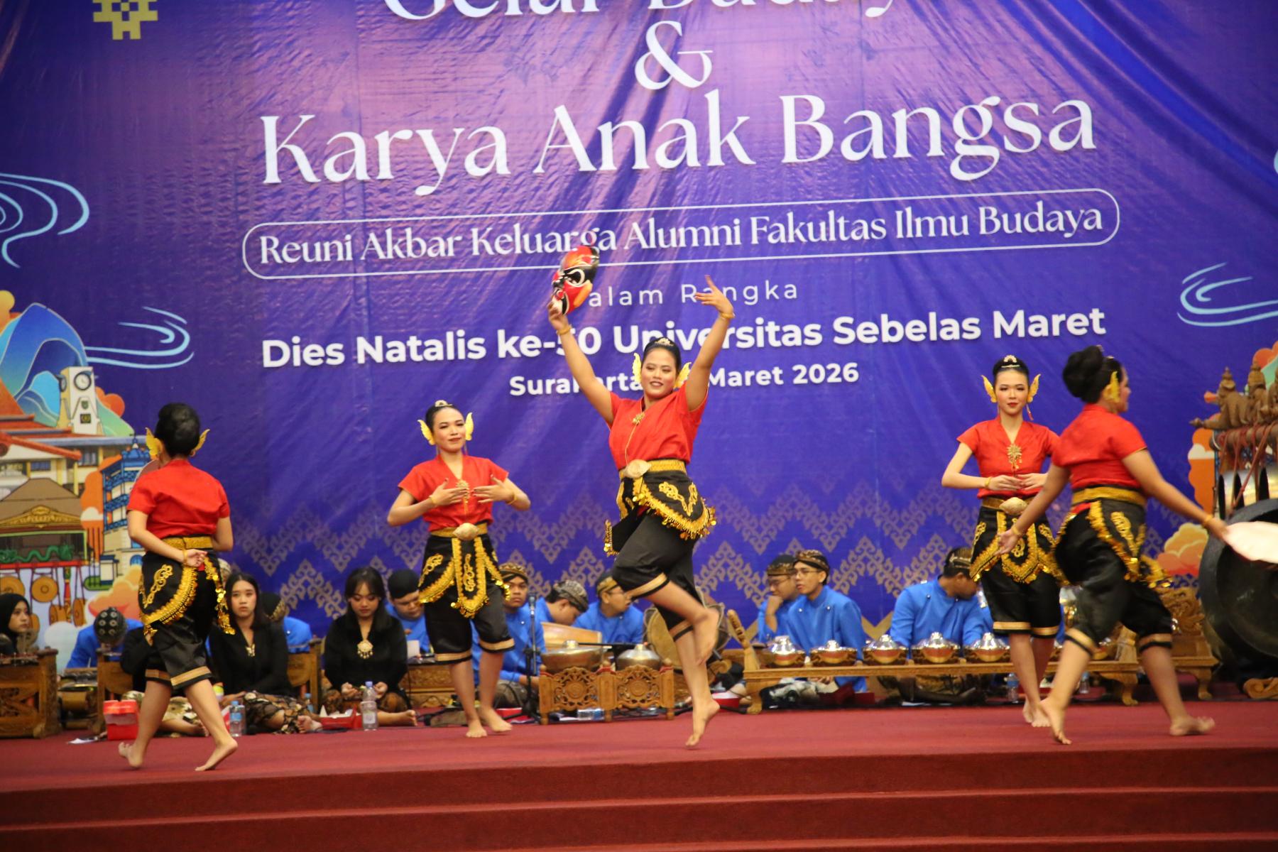Mewarnai kegiatan Dies Natalis ke-50 Universitas Sebelas Maret (UNS), Keluarga Alumni Fakultas Ilmu Budaya (KAFIB) menggelar Reuni Akbar dengan mengusung kegiatan bertajuk Gelar Budaya dan Karya Anak Bangsa. Kegitan ini diselenggarakan pada Kamis (26/3/2026) pagi di Auditorium G.P.H. Haryo Mataram UNS. Menteri Kebudayaan Republik Indonesia, Prof. (Hon) Dr. Fadli Zon, S.S., M.Sc., turut hadir dan menyampaikan orasi kebudayaan dalam kegiatan ini.