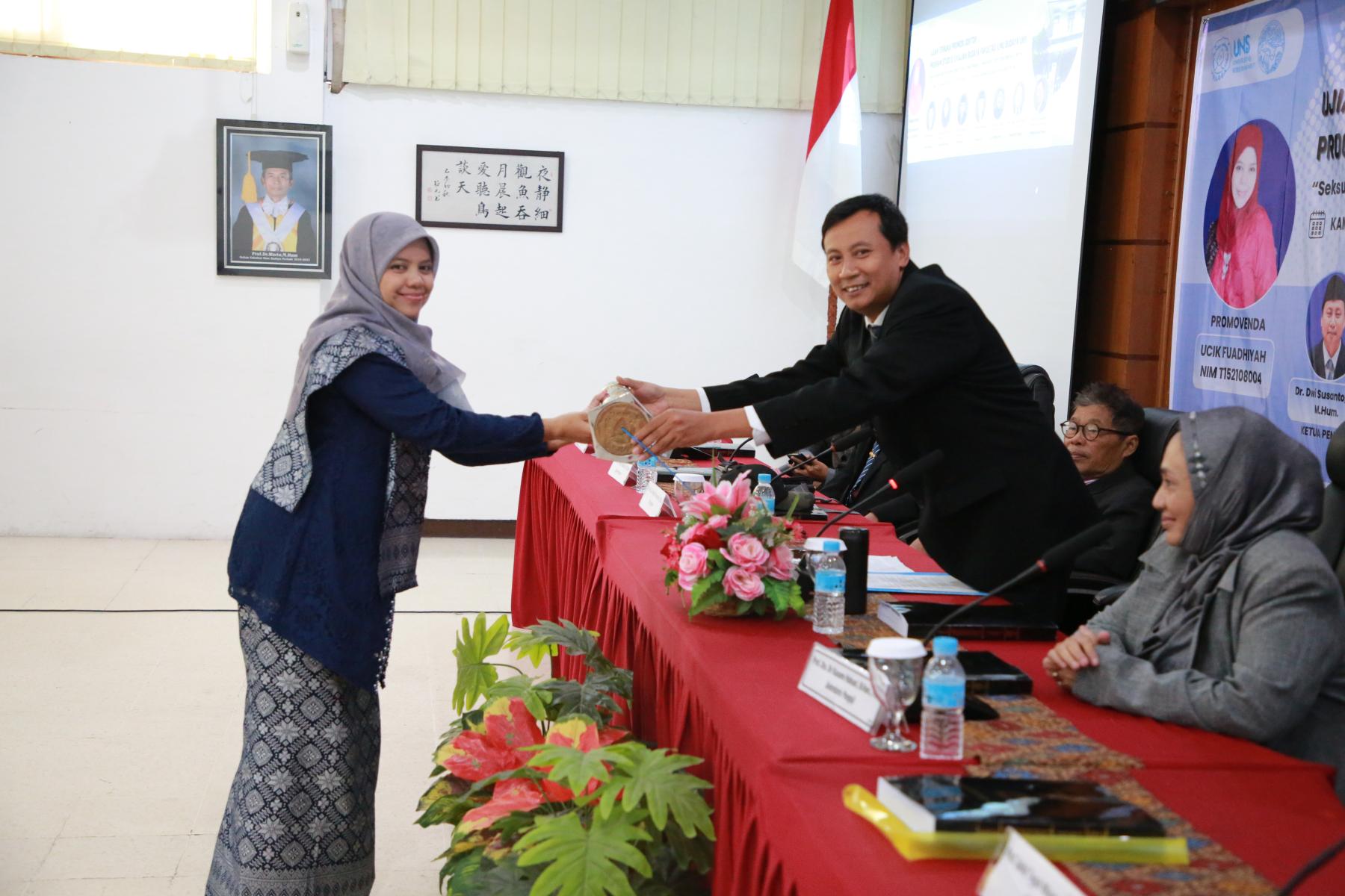Program Studi (prodi) S-3 Kajian Budaya Fakultas Ilmu Budaya (FIB) Universitas Sebelas Maret (UNS) menggelar Ujian Terbuka Promosi Doktor dengan promovenda Ucik Fuadhiyah. Kegiatan ini dilaksanakan pada Kamis (22/01/2026) siang di Ruang Seminar FIB UNS. Pada ujian terbuka promosi doktor ini, promovenda mempertahankan disertasi yang berjudul “Seksualitas dan Erotisme dalam Puisi Jawa Modern (Geguritan) dari Tabu Menuju Terang”.