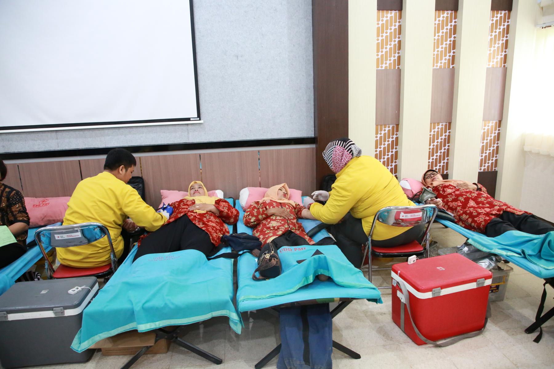 Target sebanyak 50 kantong darah dalam kegiatan Donor Darah kali ini dapat tercapa., Adapun pendonor terdiri dari dosen, tenaga kependidikan, DWP, dan mahasiswa di UNS. Selain membantu membakar kalori, manfaat donor darah bagi pendonor adalah dapat menurunkan risiko terjadinya kanker. (Humas/ WD II FIB UNS)